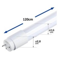 Este tubo T8 tiene conexión en un solo extremo, el cual está serigrafiado. Para optimizar el consumo energético, se deberá sustituir el cebador y eliminar la reactancia de los antiguos tubos fluorescentes. Dispone de diodo SMD 2835 de OSRAM CHIP de 130Lm/W  y de revestimiento de cristal de alta transmisión de luz que permite una distribución uniforme. Angulo de 300º.
